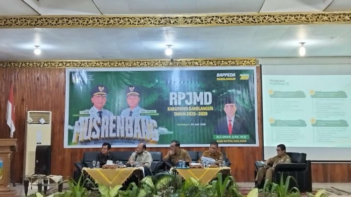 SAROLANGUN – Badan Perencanaan dan Pembangunan Daerah (BAPPEDA) Kabupaten Sarolangun menggelar Musyawarah Perencanaan Pembangunan (Musrenbang) Rencana Pembangunan Jangka Menengah Daerah (RPJMD) Kabupaten Sarolangun tahun 2025-2029, Senin (30/06/2025) di ruang Aula Bappeda Sarolangun.