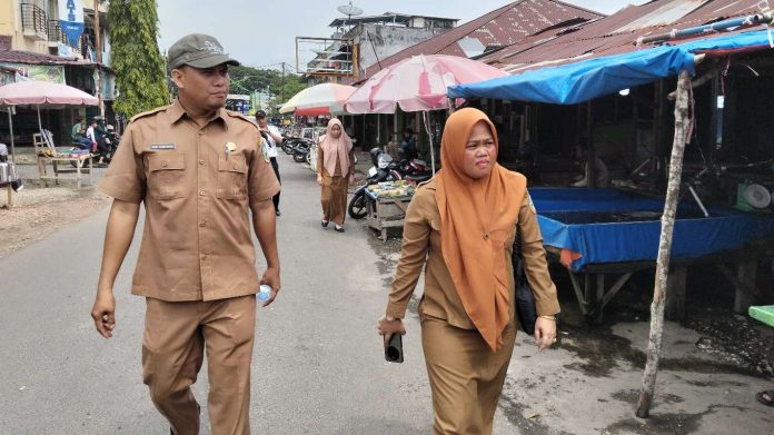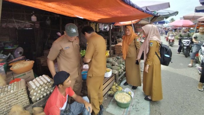 Sekretaris Bappeda Sarolangun Hj Maria Susanti didampingi staf Hari Anggara saat turun ke pasar atas Sarolangun
