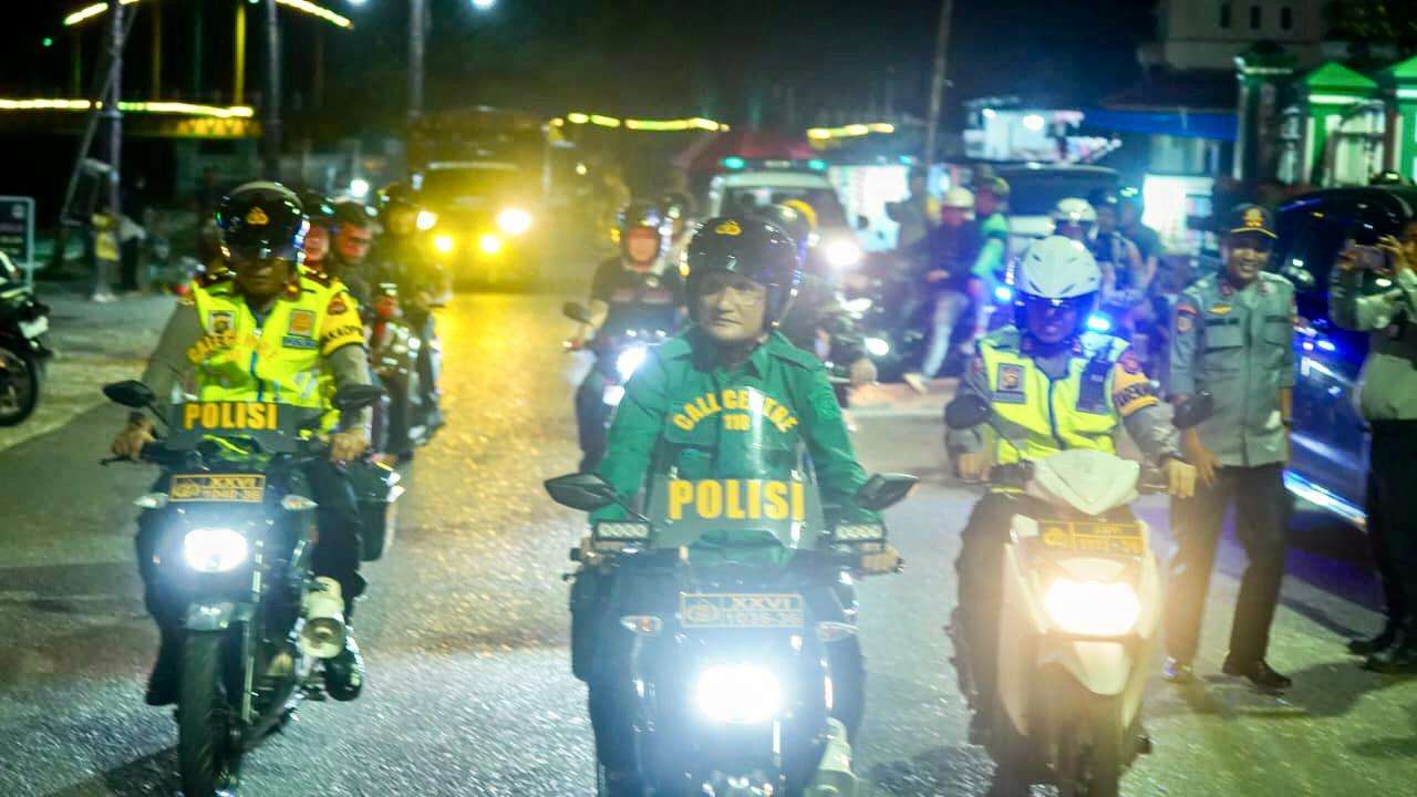 Bupati Sarolangun Hurmin, Wakapolres Sarolangun Kompol Aswindo Indriadi dan Forkopimda saat patroli mengunakan sepeda motor dalam pengamanan malam perayaan natal tahun 2025