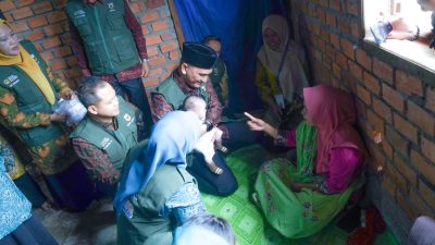 SAROLANGUN – Dalam program Gerakan Orang Tua Asuh Stunting (Genting) Berbakti Maju, Bupati Sarolangun H Hurmin beserta Wakil Bupati Sarolangun Gerry Trisatwika, SE turun langsung mengunjungi Keluarga Beresiko Stunting, Kamis (23/10/2025) di Kelurahan Gunung Kembang, Kecamatan Sarolangun.