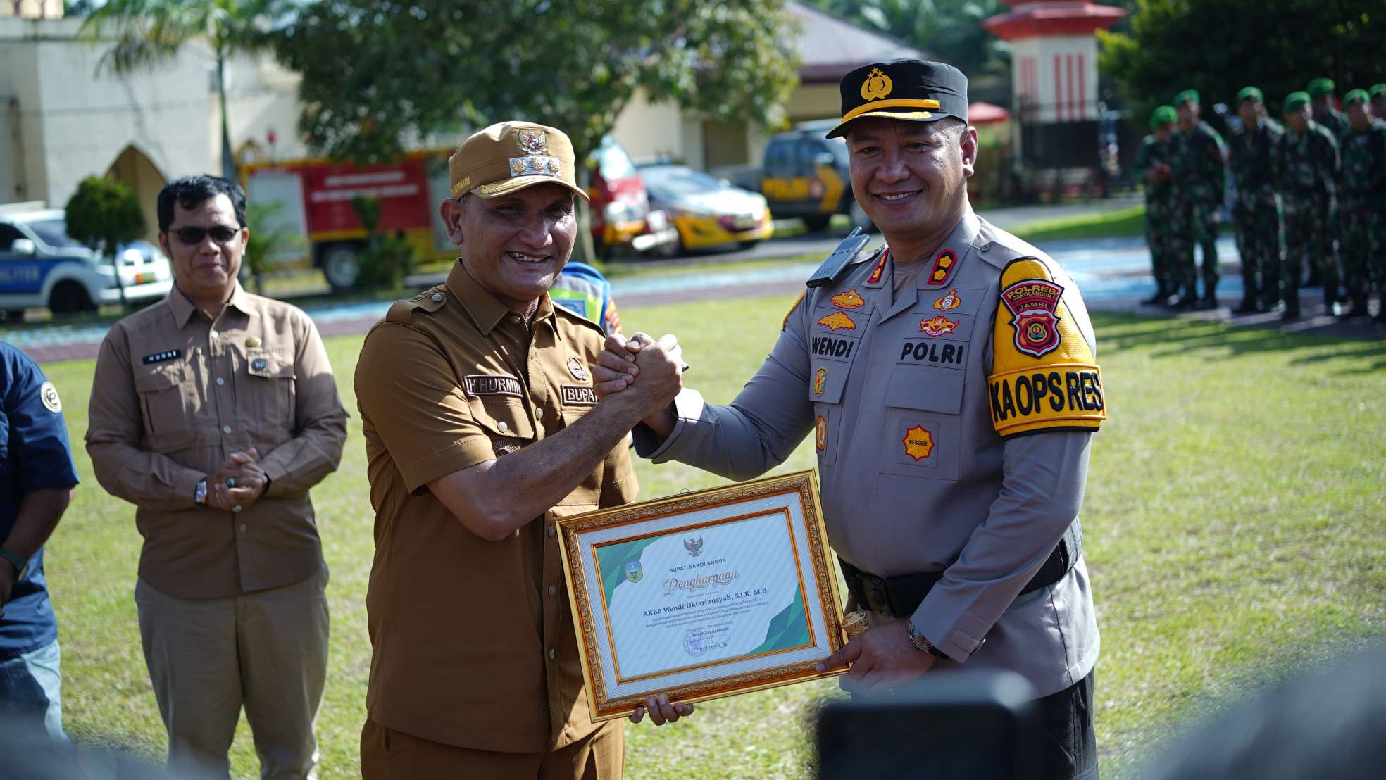 Dalam kegiatan tersebut Bupati Sarolangun Hurmin memberikan penghargaan kepada 4 Pejabat Polres Sarolangun, diantaranya Kapolres Sarolangun AKBP Wendi Oktariansyah, S.IK, MH, Wakapolres Sarolangun Kompol Aswindo Indriadi, S.IK, MH, Kabag OPS AKP Angga Luvyanto.