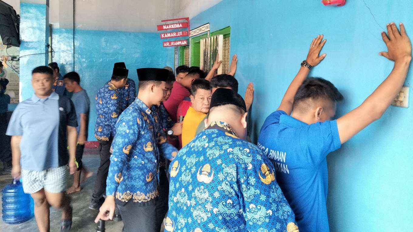 Petugas Lapas Sarolangun dan personil Gabungan saat melakukan penggeledahan badan Warga Binaan Lapas dalam kegiatan razia rutin Insidentil