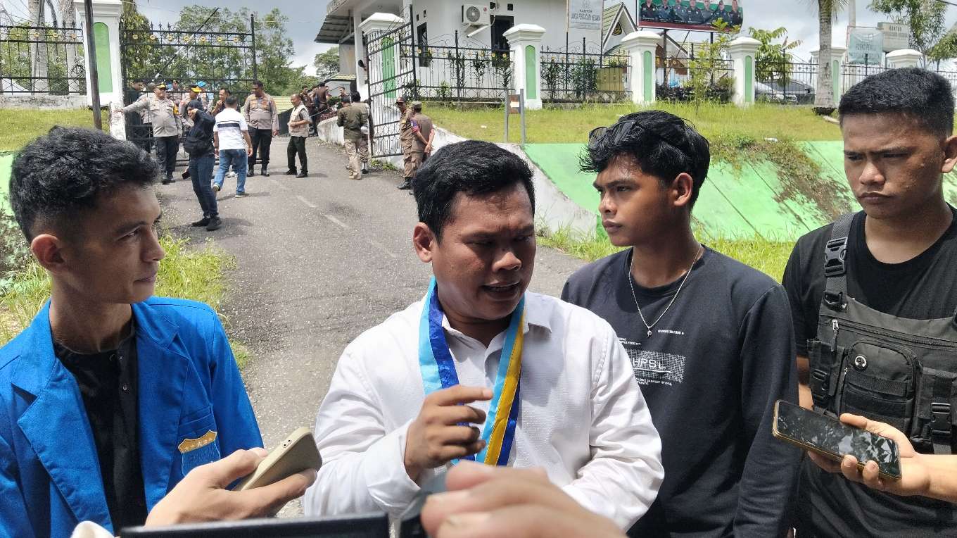Kasi Intel Kejari Sarolangun Rikson Lothar Siagian saat menyambut aksi demonstrasi mahasiswa