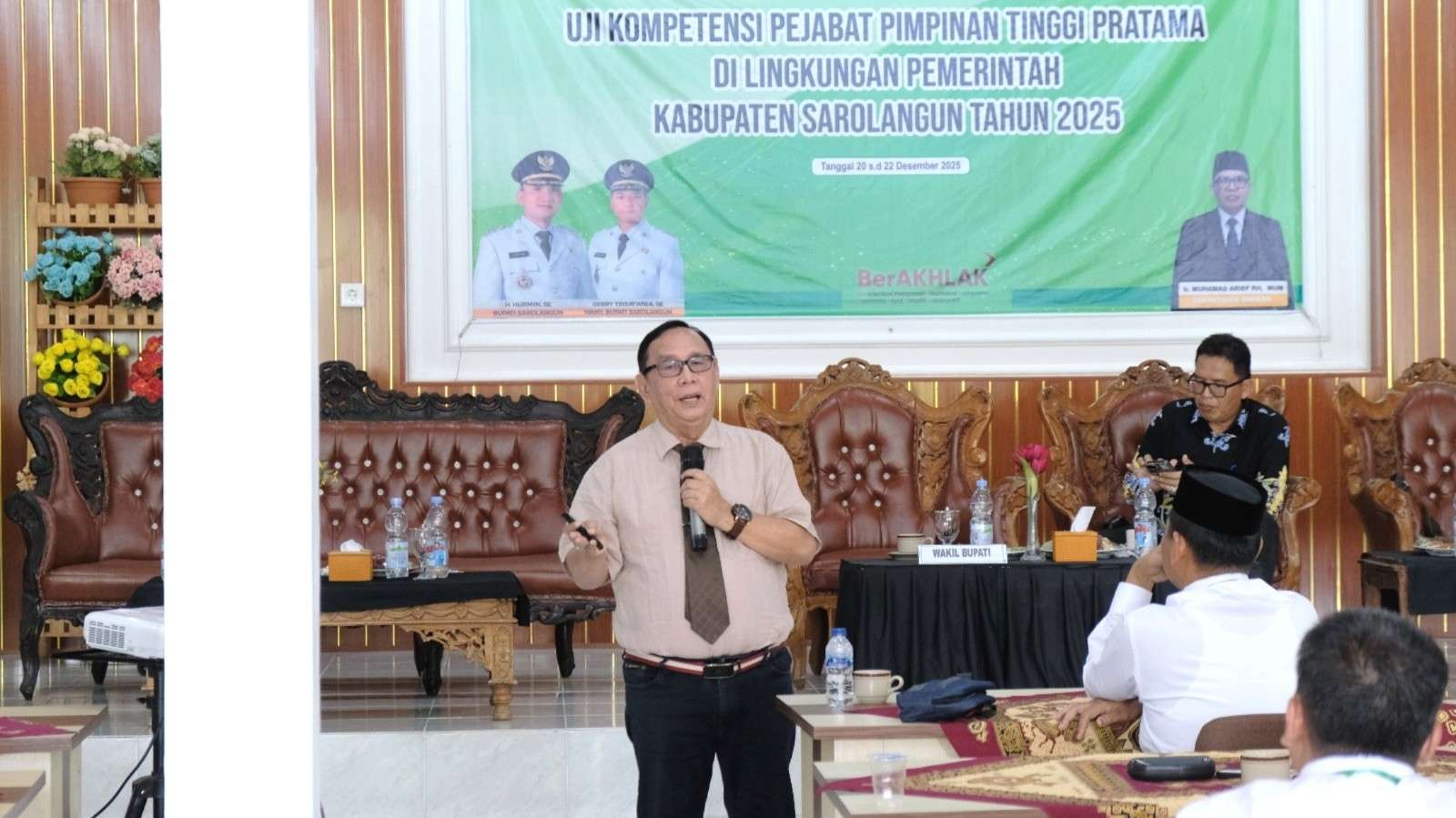 KABAR SAROLANGUN – Pemerintah Kabupaten Sarolangun melalui Badan Kepegawaian dan Pengembangan Sumber Daya Manusia (BKPSDM) Kabupaten Sarolangun menggelar kegiatan Uji Kompetensi (Ukom) Jabatan Pimpinan Tinggi (JPT) Pratama tahun 2025, Sabtu (20/12/2025) di Ruang Aula Saoenk Bang Radja, Kelurahan Suka Sari, Kecamatan Sarolangun.