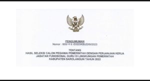 SAROLANGUN – Pemerintah Kabupaten Sarolangun telah mengumumkan secara resmi kelulusan penerimaan Pegawai Pemerintah Dengan Perjanjian Kerja (PPPK) tenaga fungsional guru, hasil seleksi tahun 2022.