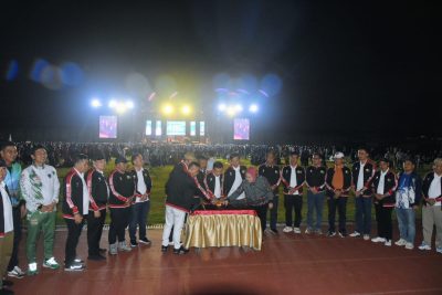 SAROLANGUN – Penjabat Bupati Sarolangun Dr Ir Bachril Bakri, M.App, Sc menghadiri kegiatan open Ceremony pembukaan Pekan Olahraga Provinsi (PORPROV) Jambi ke-XXIII Tahun 2023 di Stadion Tri Lomba Juang KONI Provinsi Jambi, Kota Jambi, Senin (10/07/2023) malam.