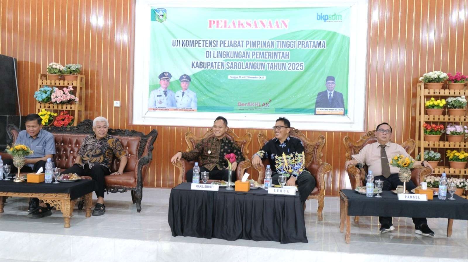 KABAR SAROLANGUN – Wakil Bupati Sarolangun Gerry Trisatwika, SE membuka secara langsung pelaksanaan kegiatan Uji Kompetensi (Ukom) Jabatan Pimpinan Tinggi (JPT) Pratama tahun 2025, Sabtu (20/12/2025) di Ruang Aula Saoenk Bang Radja, Kelurahan Suka Sari, Kecamatan Sarolangun.