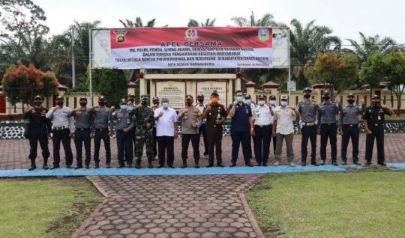 PENAJAMBI.CO, Sarolangun – Kapolres Sarolangun AKBP Sugeng Wahyudiyono, Sik, MTCP, CFE memimpin langsung apel bersama TNI/Polri, Pemerintah daerah, Tokoh Lintas Agama, Organisasi Kemasyarakatan, Organisasi Kepemudaan dan Yayasan Sosial dalam rangka pengamanan kegiatan masyarakat, Rabu (31/03/2021), di Mapolres Sarolangun.